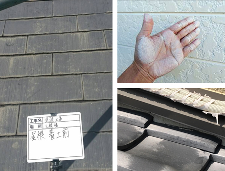 ご自分で確認できる方法として晴れの日に外壁をなぞってみて下さい。写真の様に手に付くようになったらすぐにご相談ください。