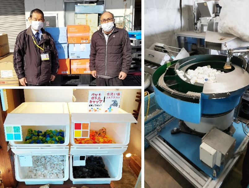 数年前からスタッフが飲んだ後のペットボトルキャップを各自で洗浄して、社内で分別収集をしています。